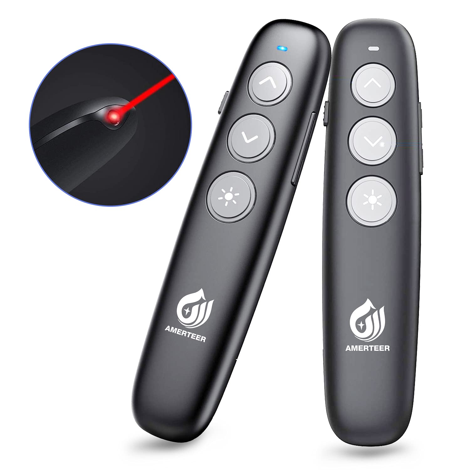 AMERTEER レーザーポインター 講演 PPTスライド用リモート ワイヤレス プレゼンター USB充電式 リモートコントロール ワイヤレスマウス操作 PowerPoint、Keynote、Googleスライド用リモート等対応 収納パック付き ブラック (036)