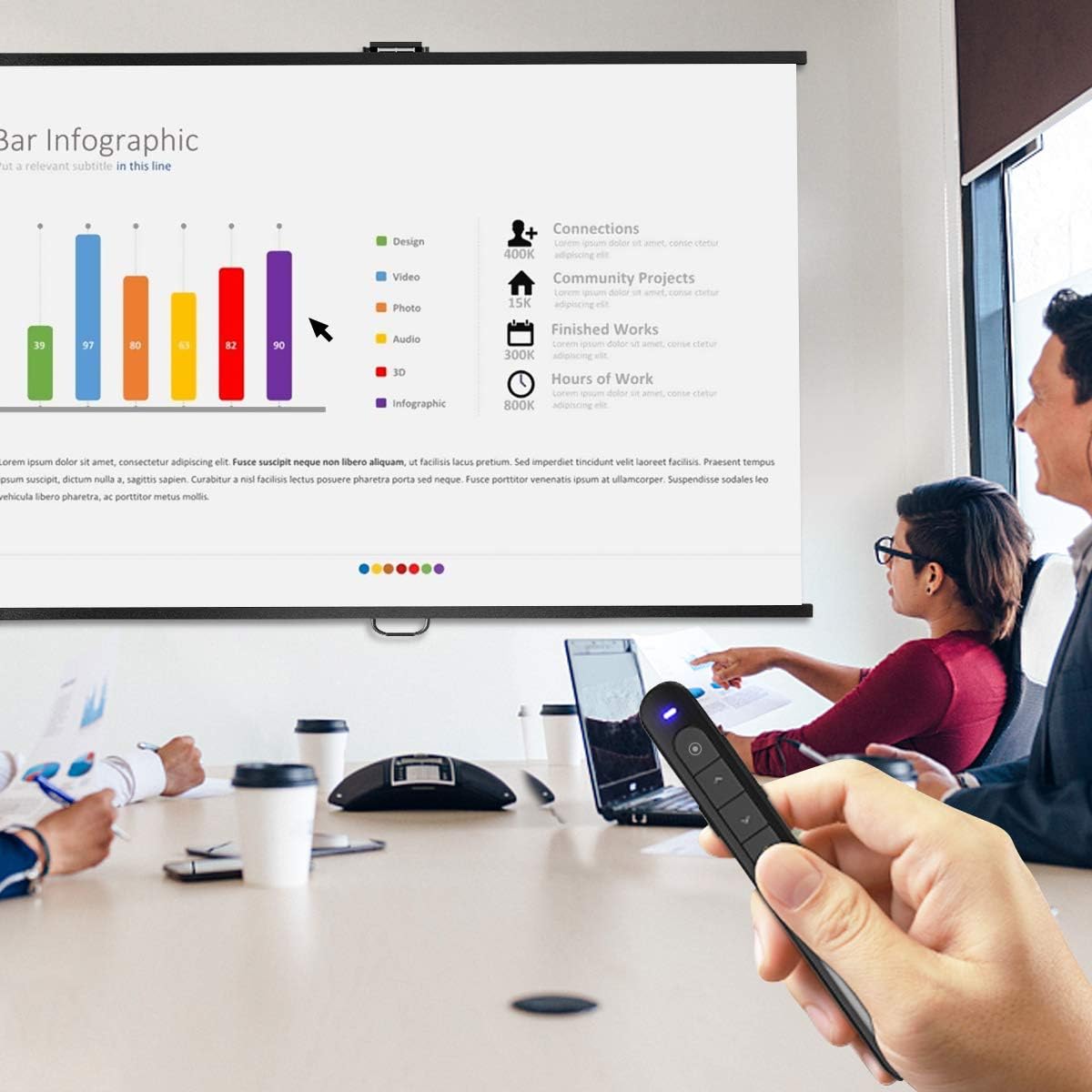 (Excellent Appearance) The streamlined presenter body is luxurious, easy to grip and has a pen-like grip that is easy to store and prevent it from falling out. Flexible buttons for comfortable operation in the operating area